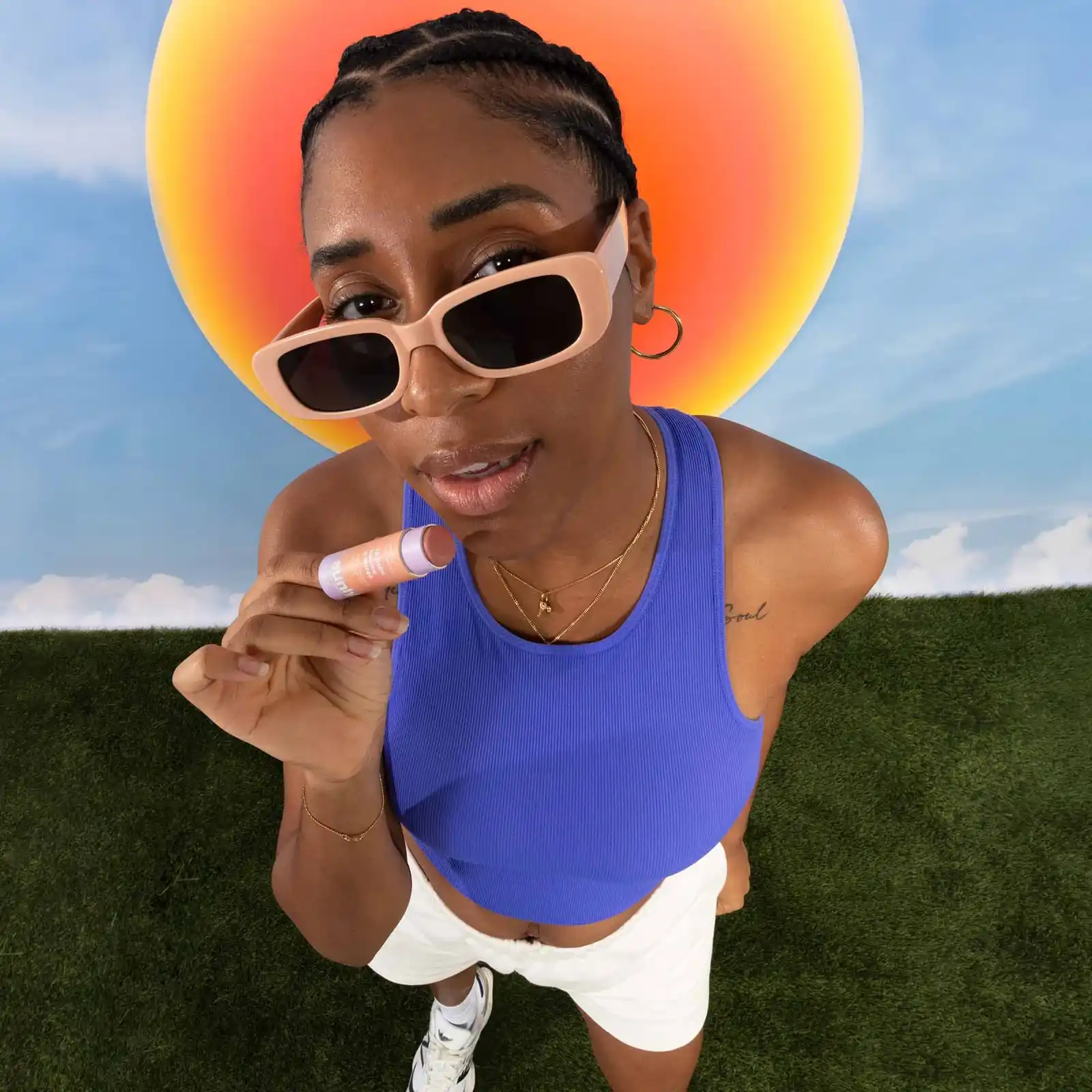 Ingrédient actif : Oxyde de zinc (10 %) Ingrédients inactifs : Huile de cocos nucifera (noix de coco), acide polyhydroxystéarique, triglycéride caprylique/caprique, béhénate de béhényle, beurre de butyrospermum parkii (karité), huile de graines d'helianthus annuus (tournesol), cire de graines d'helianthus annuus (tournesol), huile de graines de ricin commun, huile de noyau d'argania spinosa (argan), cire d'euphorbia cerifera (candelilla), béhénate de glycéryle, octyldodécanol, CI 77491 (oxydes de fer), CI 77492 (oxydes de fer), CI 77742 (violet de manganèse), CI 77499 (oxydes de fer), esters de jojoba, trihydroxystéarine, acide stéaroyl glutamique, acétate d'éthyle*, hexanoate d'éthyle*, Gamma-Nonalactone*, Gamma-Octalactone*, Vanilline*, *arôme (arôme)